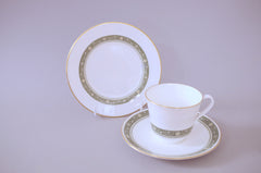 Rondelay is a pattern produced by Royal Doulton in the Concord shape and was in production for 27 years between 1970 and 1997. The pattern features a green band with small flowers, offset with a decorative trim on the inside the band and finally, the pieces are finished with gold gilding giving the pattern a modern, yet timeless look. The length of production spanning 27 years demonstrates the popularity of this pattern, which even today remains a firm favourite.
