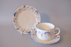 Windermere is a pattern produced by Royal Doulton as part of the Expressions range. It's production started in 1991 and was discontinued 8 years later in 1999. The pattern features blue and pink flowers and is finished with a blue trim resulting in a modern design that is still very popular today. As with all of the Expressions range, the pieces are dishwasher, freezer, oven and microwave safe.